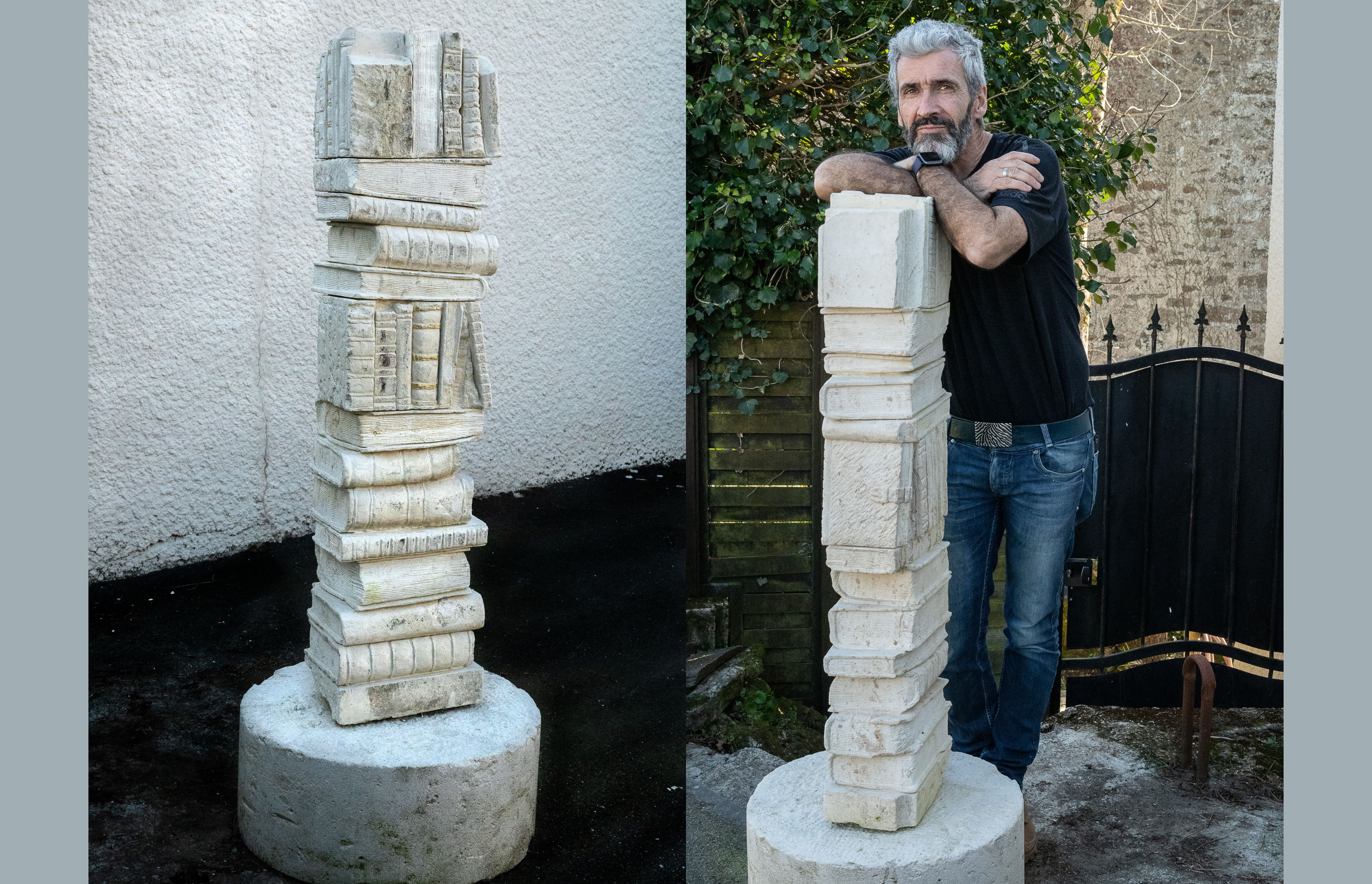 Ma démarche artistique, en tant que sculpteur de livres en pierre s’inscrit dans une volonté de conjuguer la solidité, la fragilité, la permanence et l’éphémère. En utilisant la pierre, un matériau traditionnellement associé à la mémoire et à la pérennité, je souhaite évoquer la permanence de la pensée, des idées, mais aussi la vulnérabilité qui accompagne l’expérience mentale. La sculpture de livres en pierre, symbolise ainsi cette tension entre stabilité et instabilité, entre ceux qui semble immuable et ce qui peut s’effondrer à tout moment.