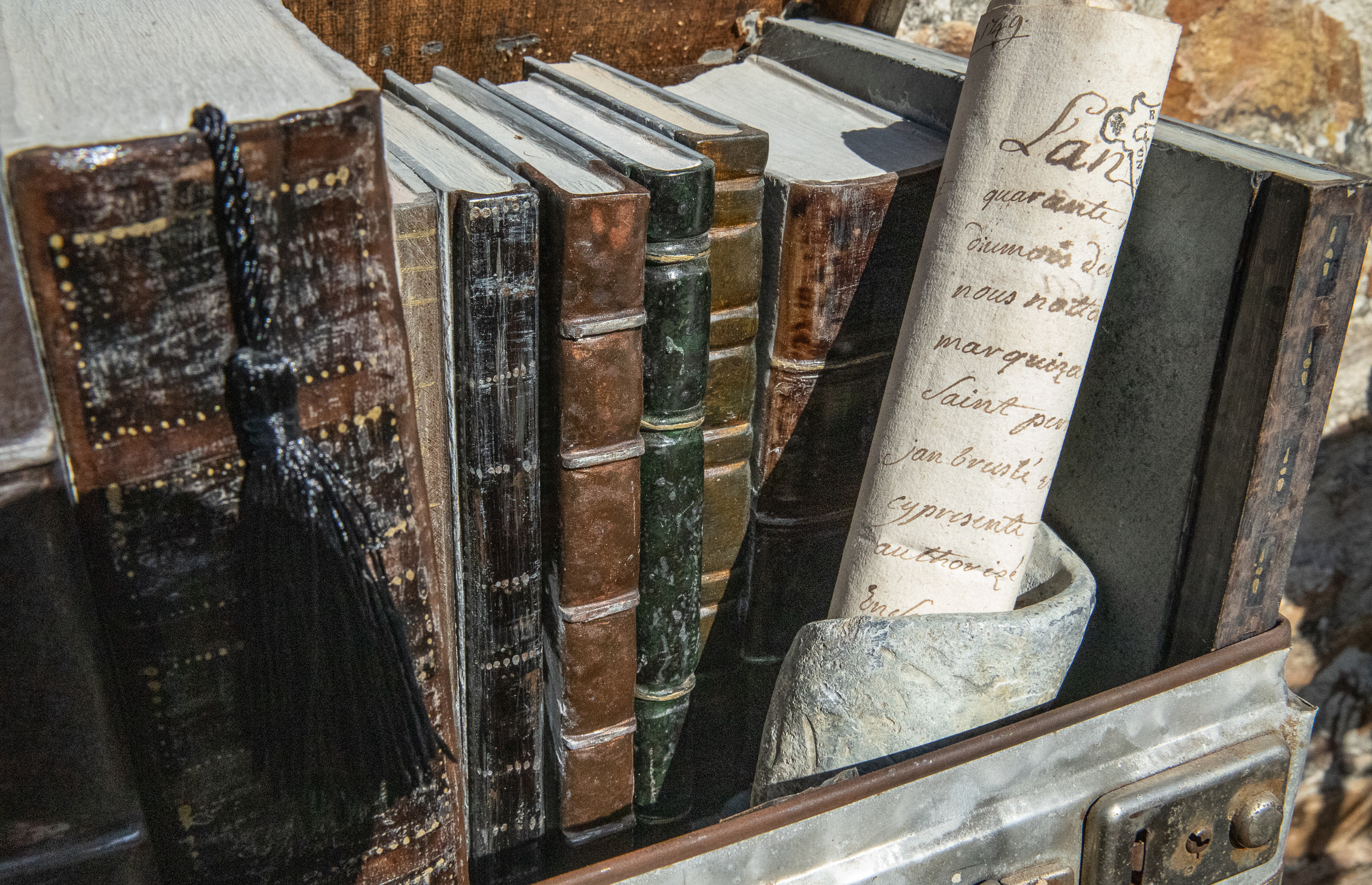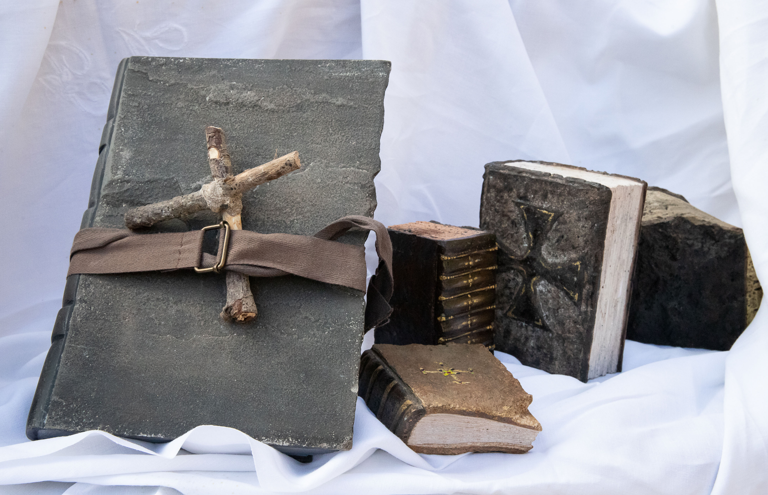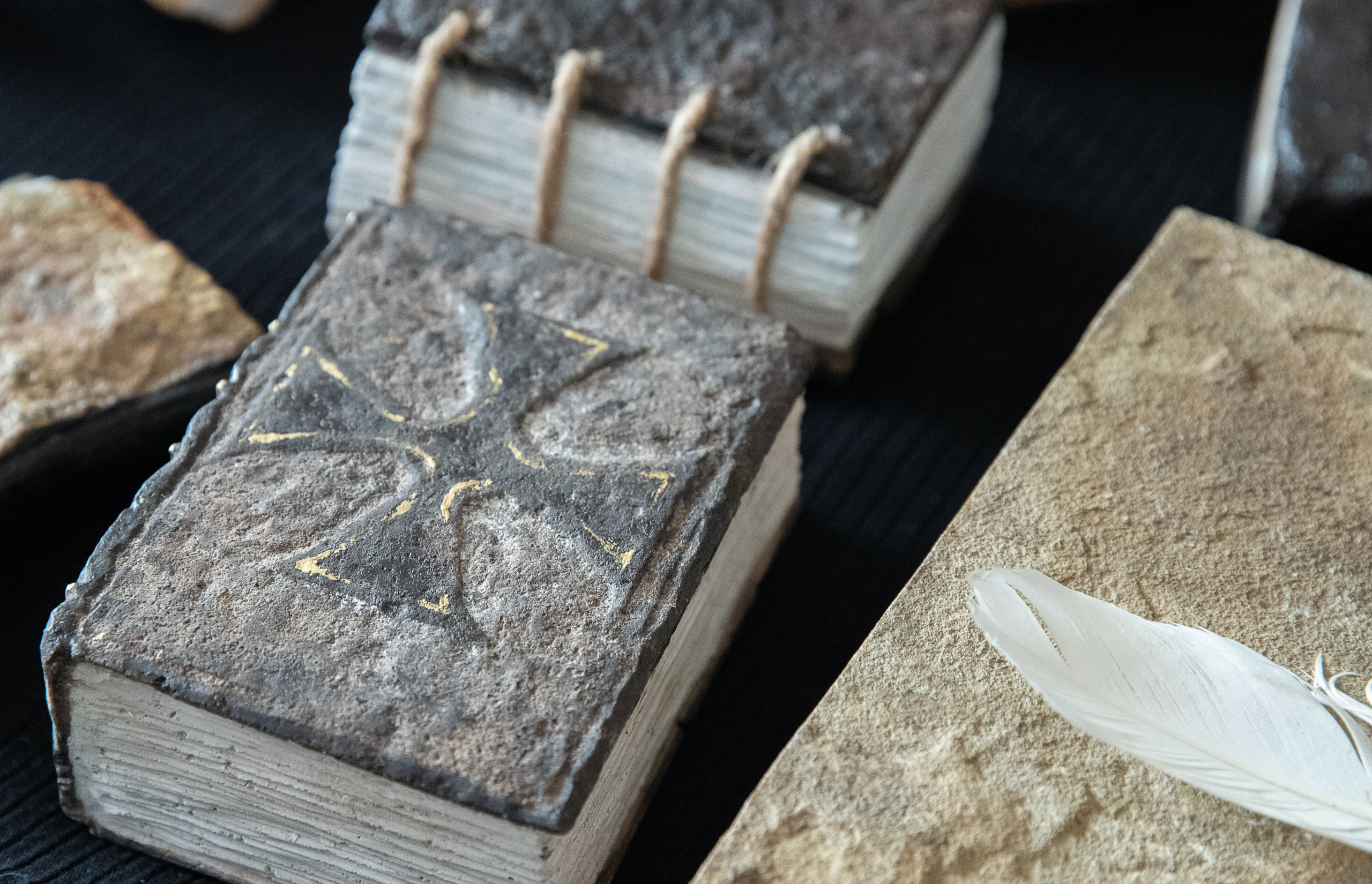 Pascal CLEMENT aime l’ambiance mystérieuse des abbayes et des monastères. Il s’est inspiré des codex et autres grimoires du Moyen âge, livres reliques, aux secrets précieusement conservés pour sculpter ses livres et les rendre éternels à travers la pierre comme des témoignages du passé.