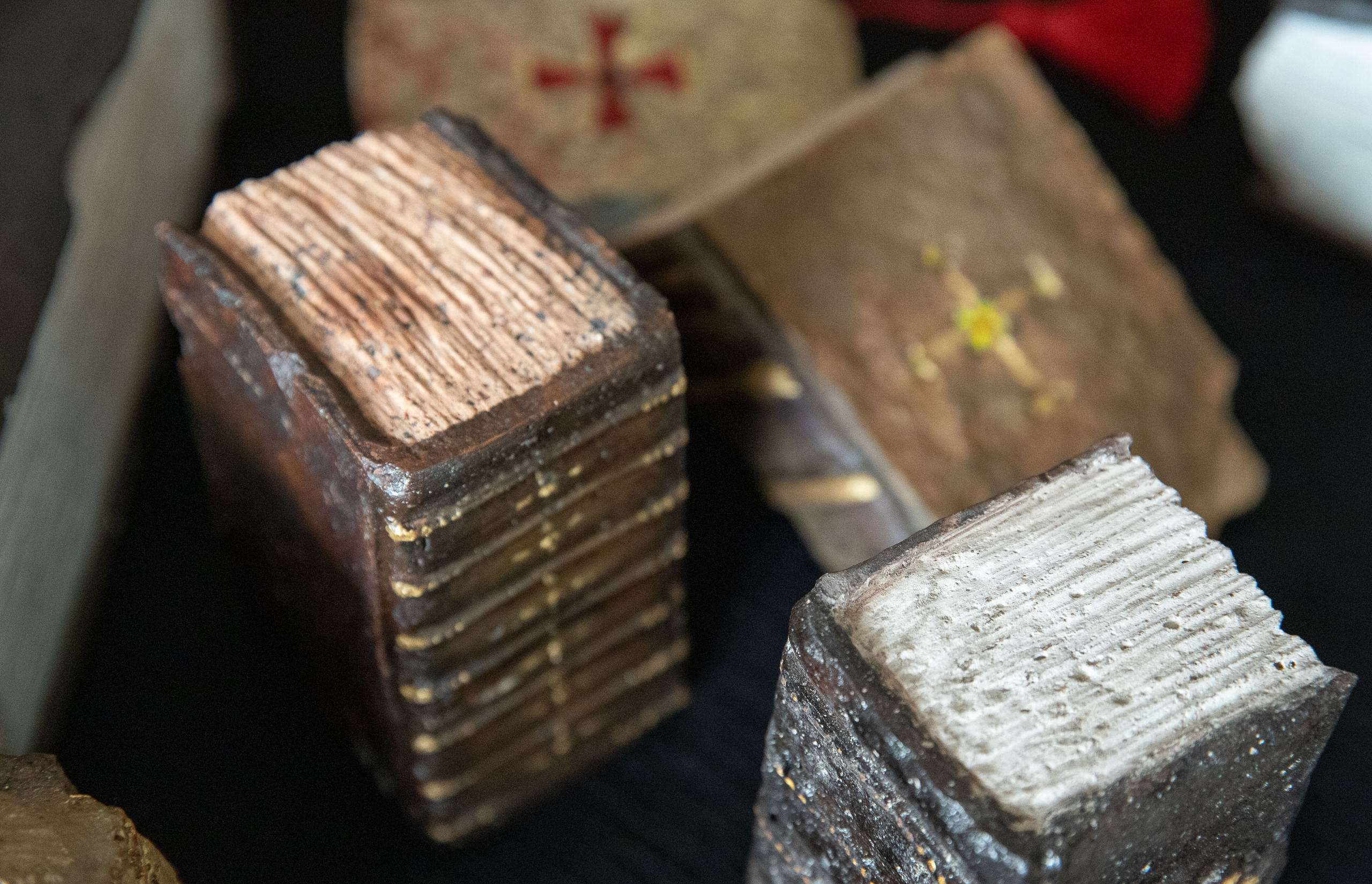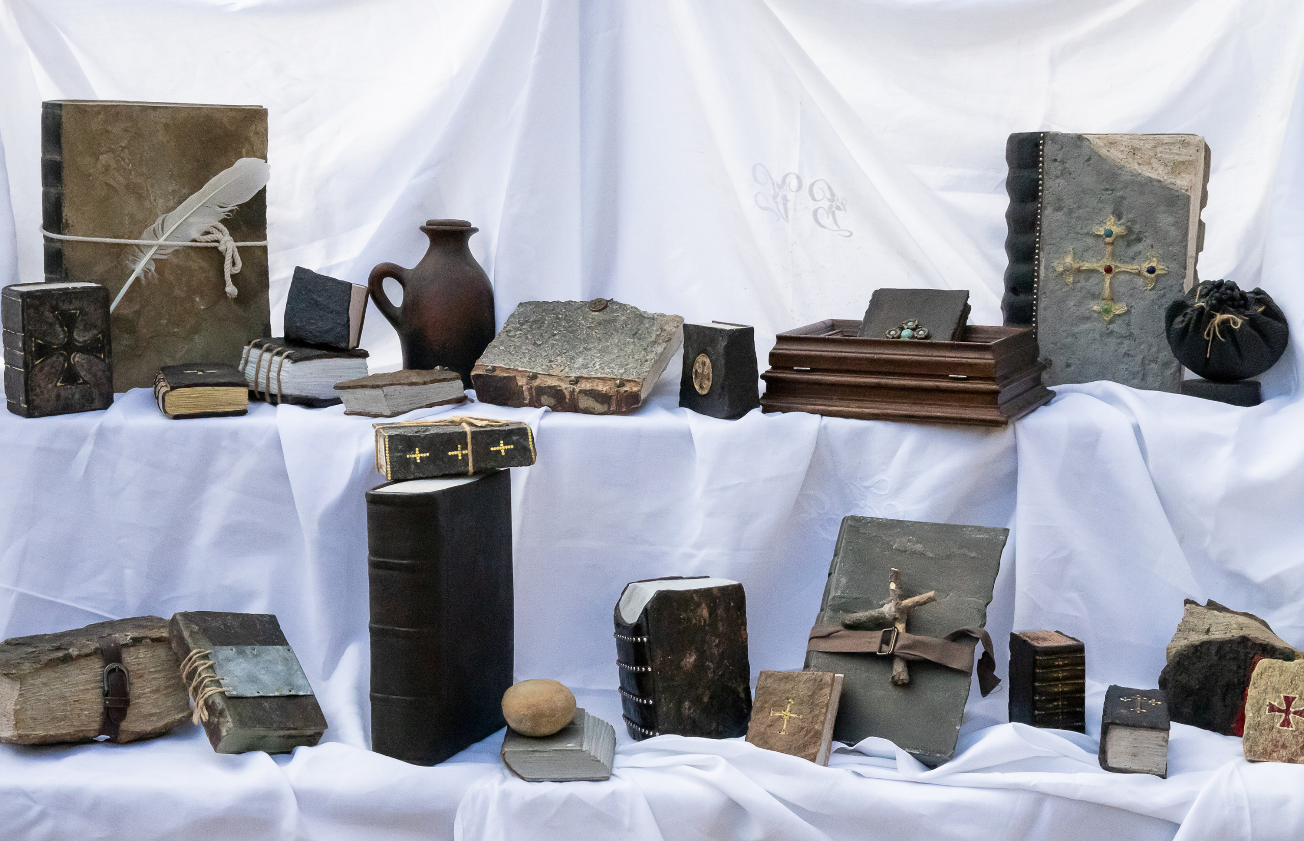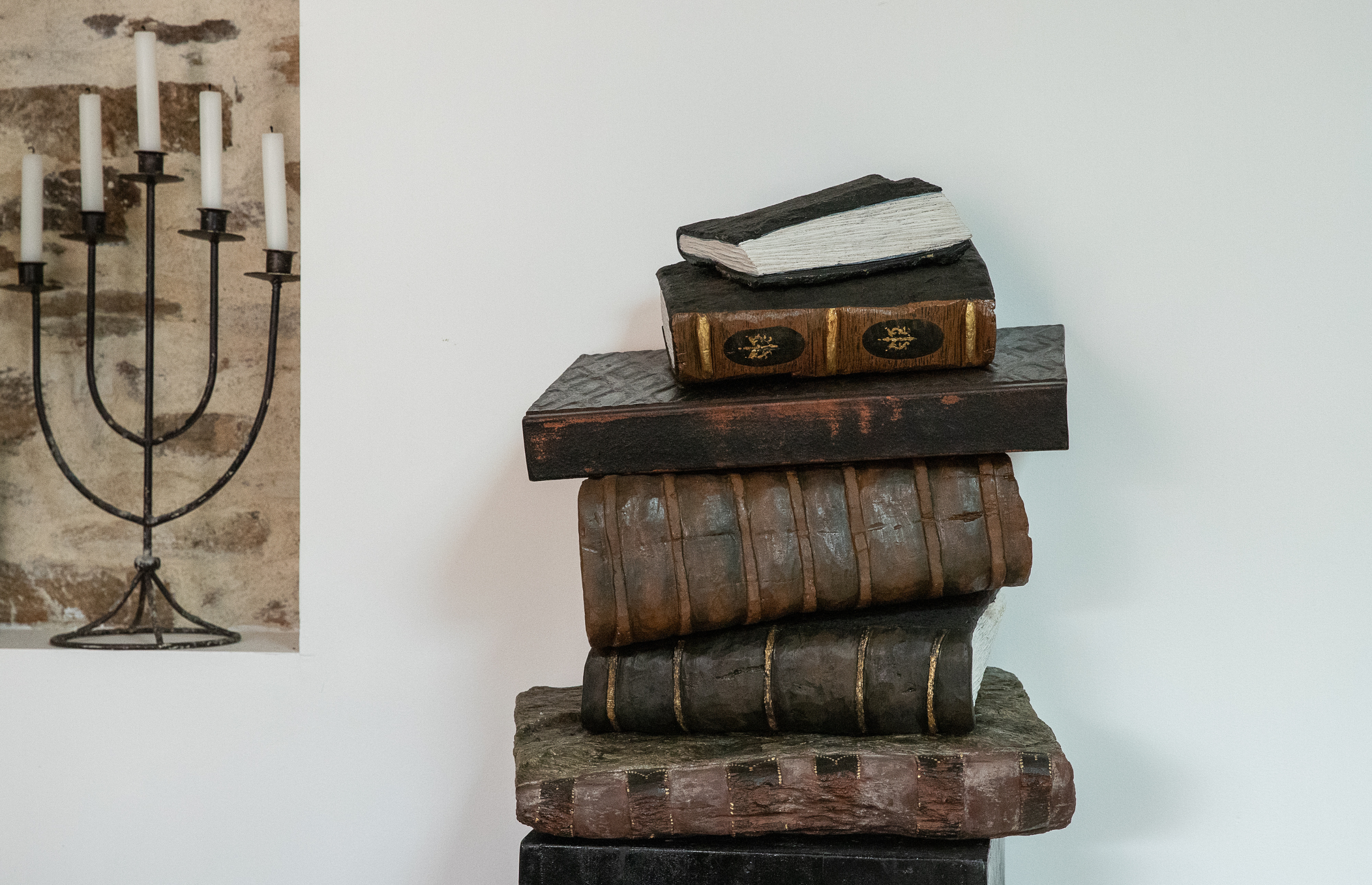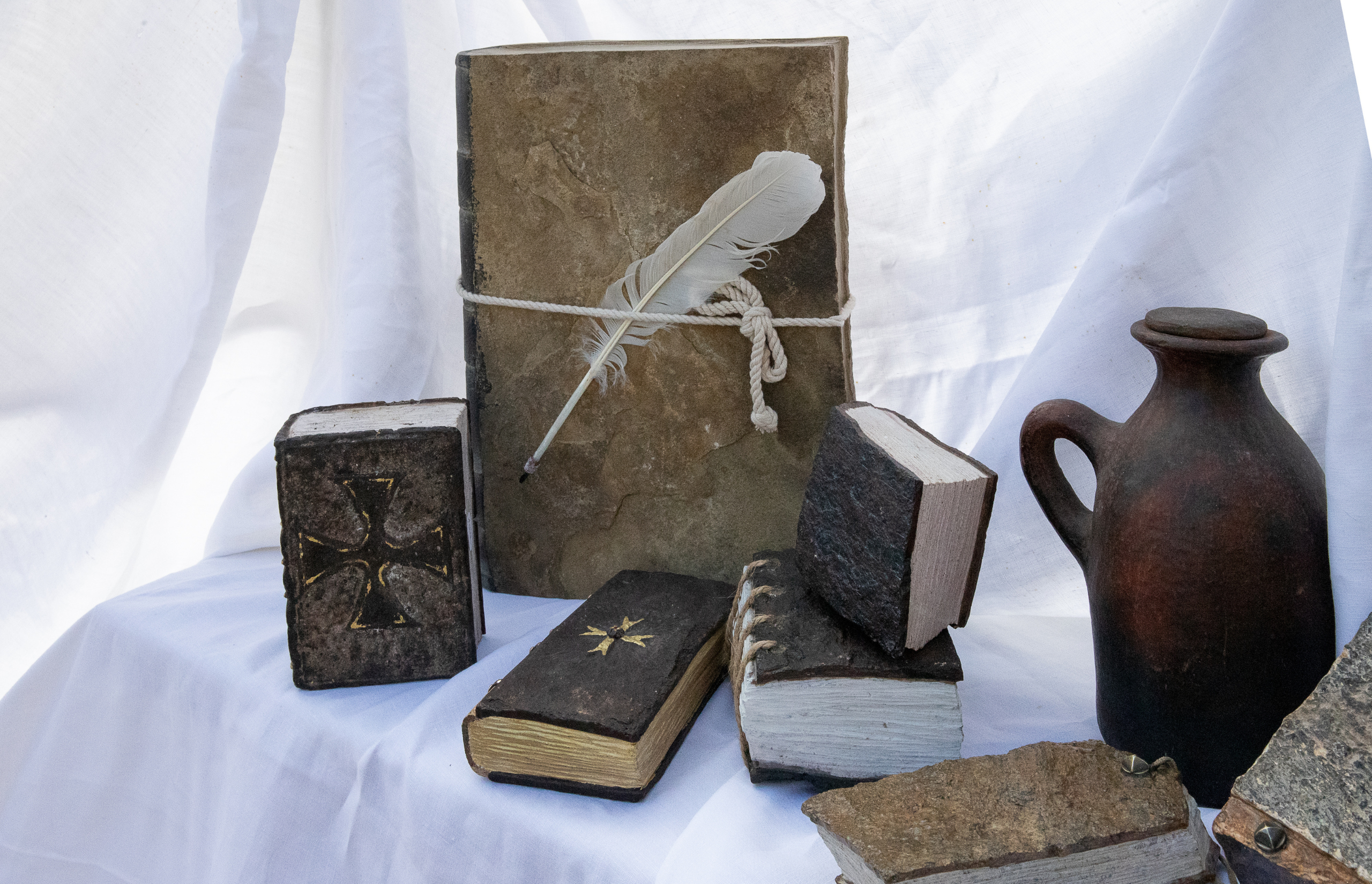Pascal CLEMENT aime l’ambiance mystérieuse des abbayes et des monastères. Il s’est inspiré des codex et autres grimoires du Moyen âge, livres reliques, aux secrets précieusement conservés pour sculpter ses livres et les rendre éternels à travers la pierre comme des témoignages du passé.