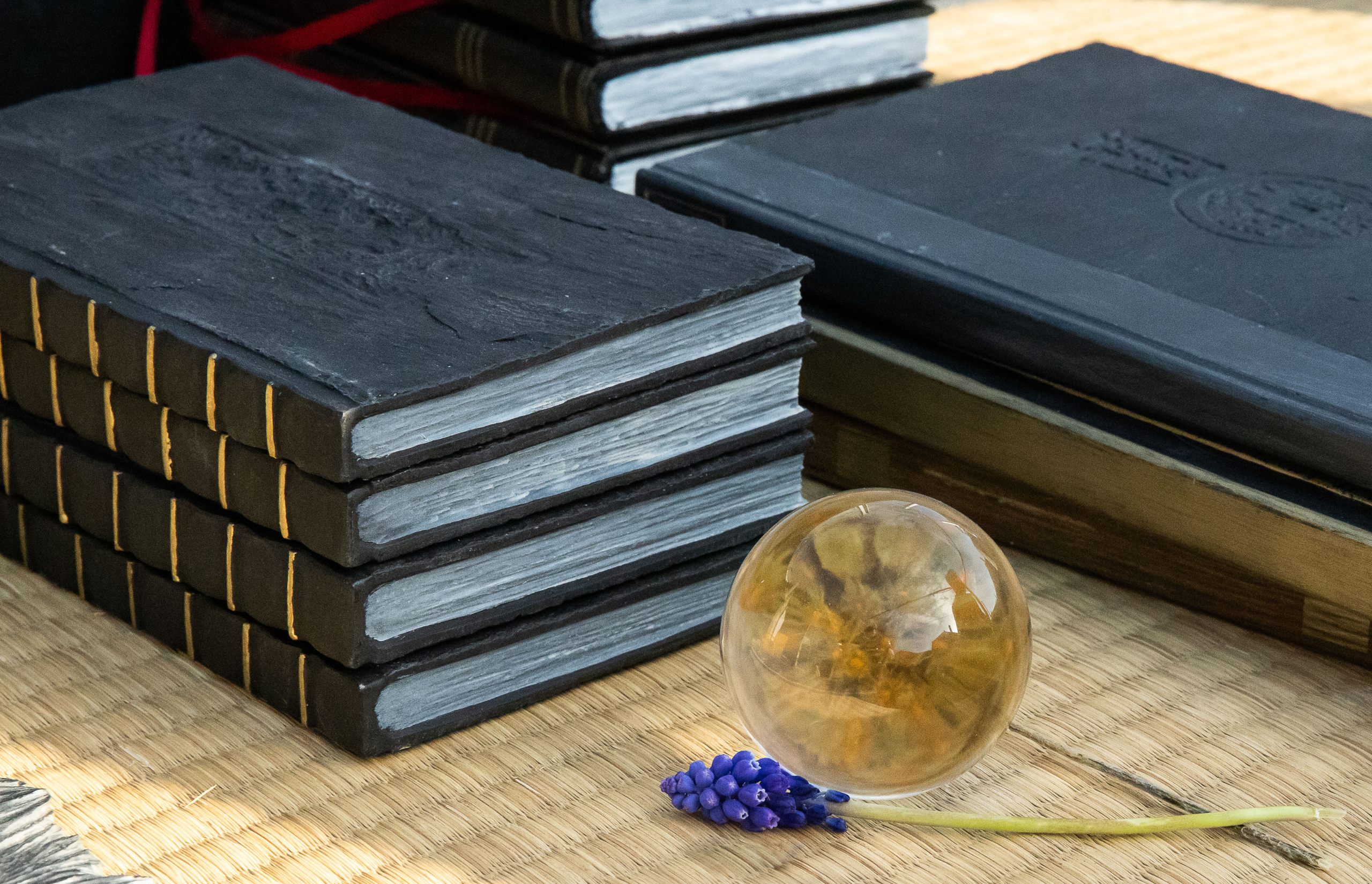 Pascal CLEMENT s’est intéressé au Japon à travers la pratique des arts martiaux. Il admire la culture et la tradition japonaise pour la richesse et la diversité de ses rituels qui mettent l’accent sur un sens de la présentation raffiné. Il s’en inspire pour créer des livres précieux et riches en symboles.